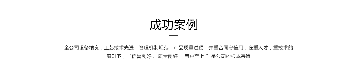 全公司設備精良,管理機制規范,產品質量過硬,并重合同守信用,在重人才,重技術的原則下,“信譽好 、質量標準 、用戶至上 ”是公司的根本宗旨。公司上下,團結一致,把不斷完善并持續改進質量管理體系作為公司永恒的追求。